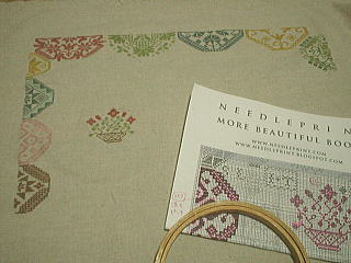 発表された分の外周は刺しおえたので、「なんで外周の次にソコ刺すの~!」という声が聞こえてきそうだなぁと思いつつ、花かご刺しちゃいました。