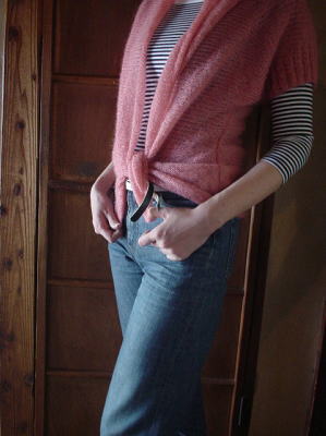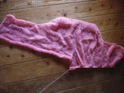 ピンクのモヘアで半そでカーディガン、完成!