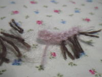 ピンクの長方形に植毛。