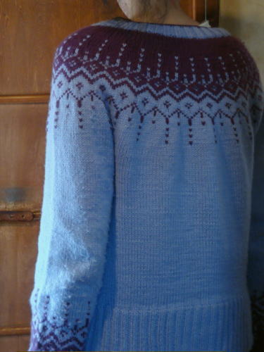 元々は、ヨーク部分だけ編み込みするデザインだけど、