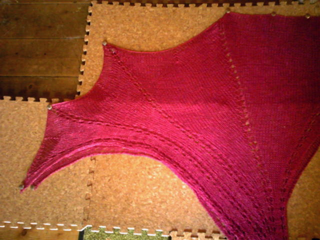 編み終わってただいまブロッキング中です。
