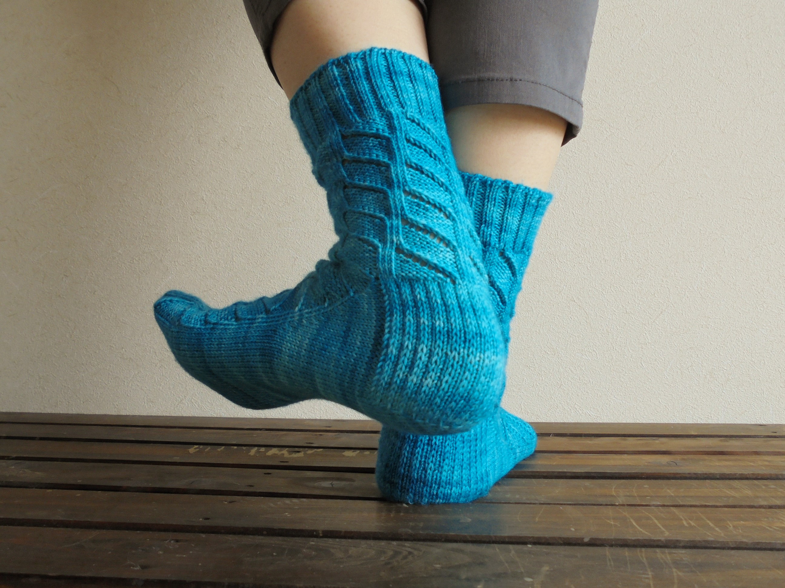 編みあがった靴下も、伸縮性があるので、しっかりフィットして気持ちいいです。