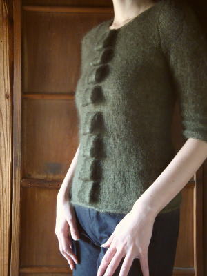 このカーディガンのデザインのポイントだと思うので、そこんとこをやや強調。