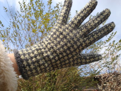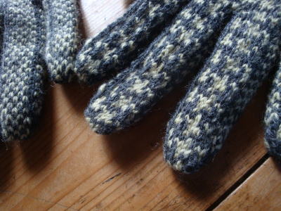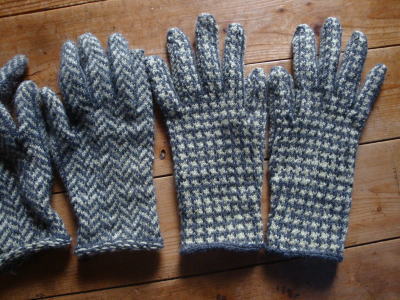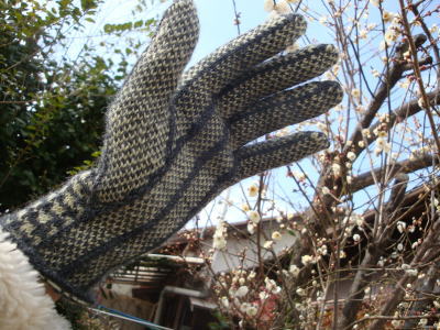 昨年末に編んだヘリンボーンの手袋と、色は同じで柄違い。