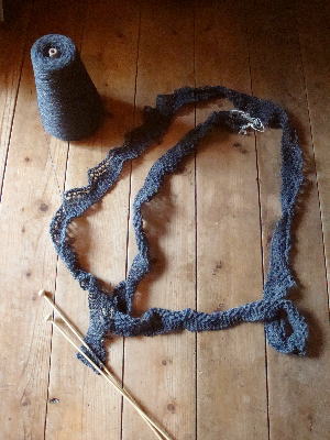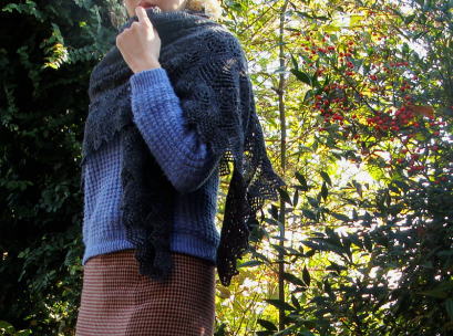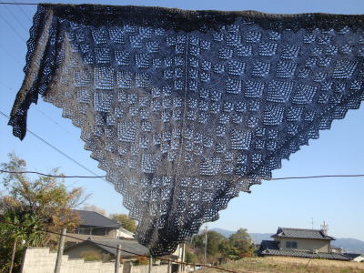 三角ショール、あんまり使わないんだけど、編むの楽しくて困るw
