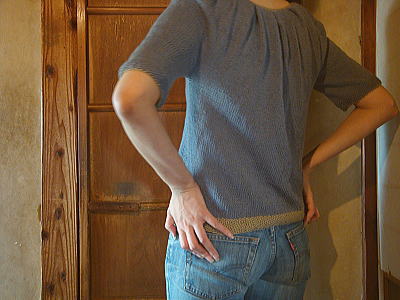 裾をボーダーにしてみたり、しっくりこないのでほどいたり。