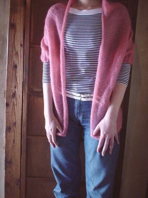ピンクのモヘアで半そでカーディガン、完成!
