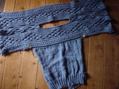 元々のは、片方の袖から編み始めて、肩まできたら、