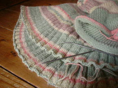 裾をゴム編みにしたかったんですよね~、どうしても。