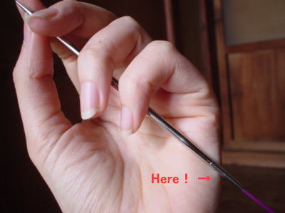 針先を親指と人差し指で持った時に、手のひらの端にかかるぐらいの長さがあると、