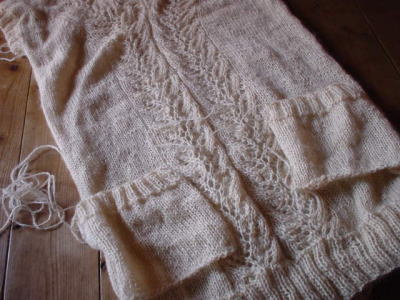 三角ショールをこんなに大きく編んじゃうのも、軽いおどろきです。