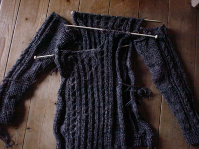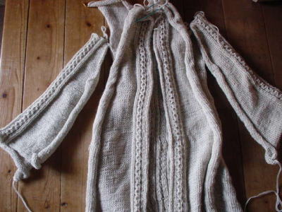 各パーツほぼ編みあがったから、とじて襟編まねば。)