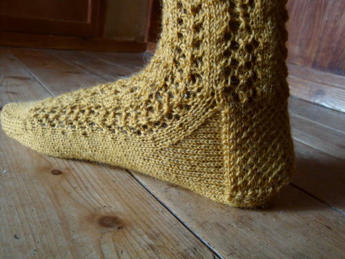 履き口が普通のリブではなかったり、かかとの編み方も一工夫あっておもしろかった。