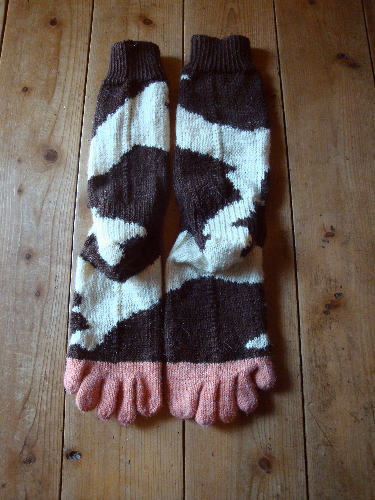 その選ばれしパターンの中のウケ狙い要員、牛柄5本指ソックスです。