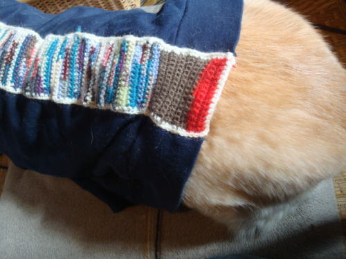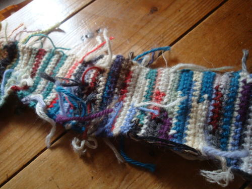 半端に残ってる余り糸をなるべくランダムに適当にこま編みした、