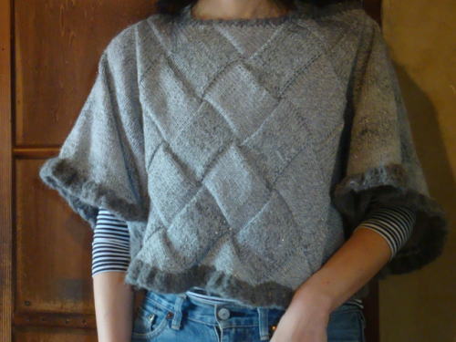 リッチモアの新商品「オーロラ」で編んでいたポンチョ、完成しました!